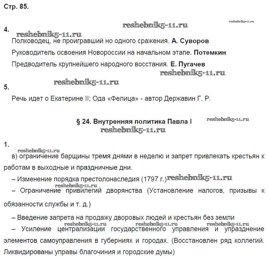 Готовая домашняя работа с ответами по Истории за 8 класс Артасов, Данилов, Косулина, Соколова Рабочая тетрадь УМК Просвещение 2016 ФГОС - Страницы 85