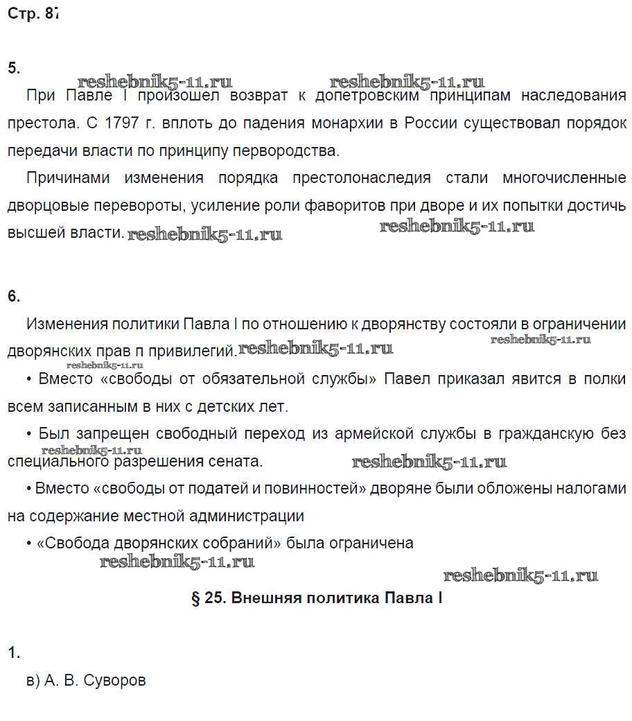 Готовая домашняя работа с ответами по Истории за 8 класс Артасов, Данилов, Косулина, Соколова Рабочая тетрадь УМК Просвещение 2016 ФГОС - Страницы 87