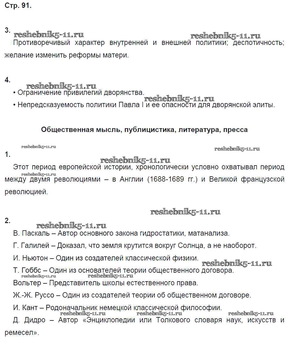 Готовая домашняя работа с ответами по Истории за 8 класс Артасов, Данилов, Косулина, Соколова Рабочая тетрадь УМК Просвещение 2016 ФГОС - Страницы 91
