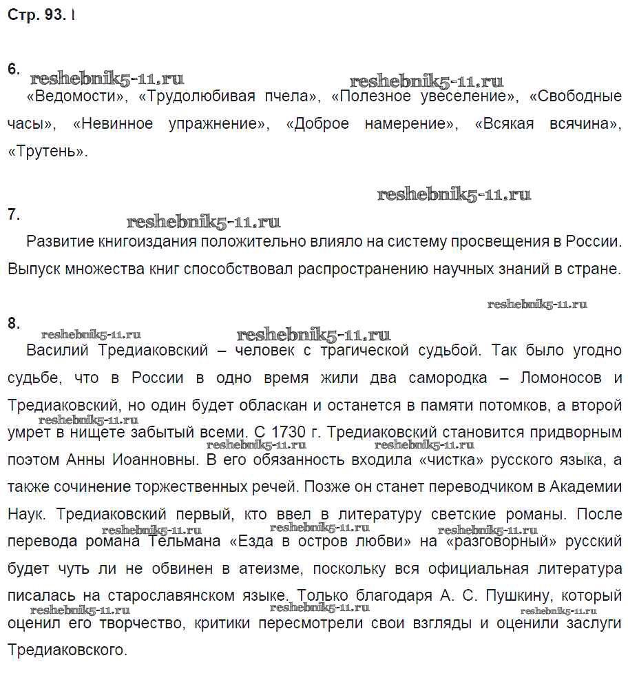 Готовая домашняя работа с ответами по Истории за 8 класс Артасов, Данилов, Косулина, Соколова Рабочая тетрадь УМК Просвещение 2016 ФГОС - Страницы 93