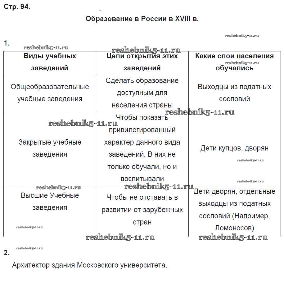 Готовая домашняя работа с ответами по Истории за 8 класс Артасов, Данилов, Косулина, Соколова Рабочая тетрадь УМК Просвещение 2016 ФГОС - Страницы 94
