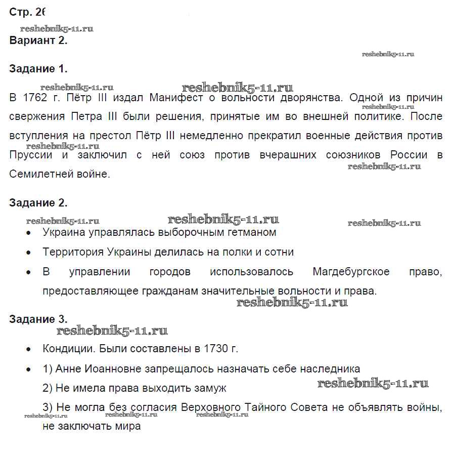 Готовая домашняя работа с ответами по Истории за 8 класс Артасов Контрольные работы УМК Просвещение 2016 ФГОС - Страницы 26