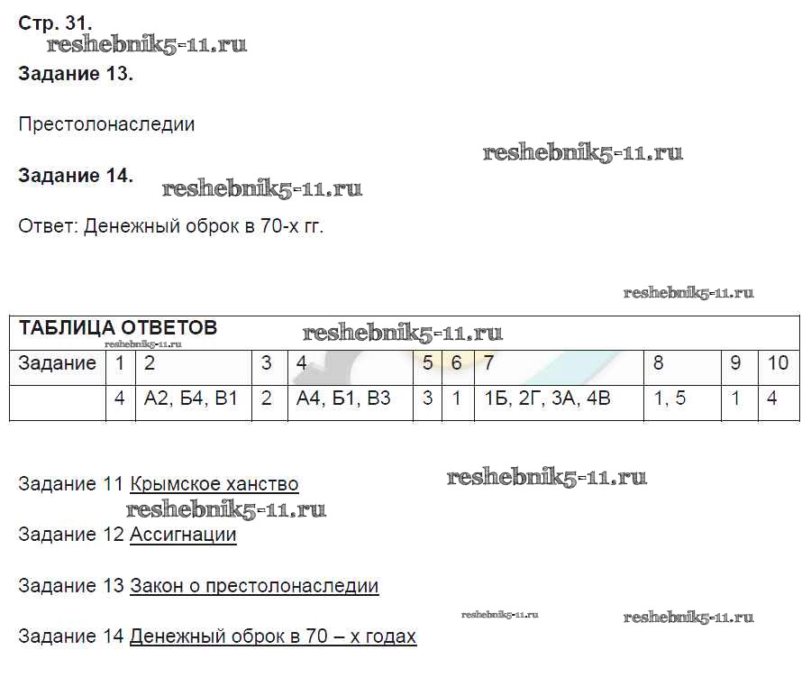Готовая домашняя работа с ответами по Истории за 8 класс Артасов Контрольные работы УМК Просвещение 2016 ФГОС - Страницы 31
