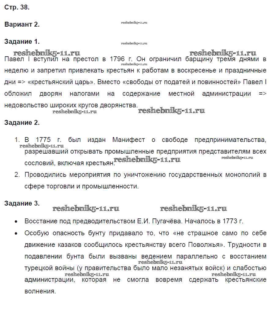 Готовая домашняя работа с ответами по Истории за 8 класс Артасов Контрольные работы УМК Просвещение 2016 ФГОС - Страницы 38