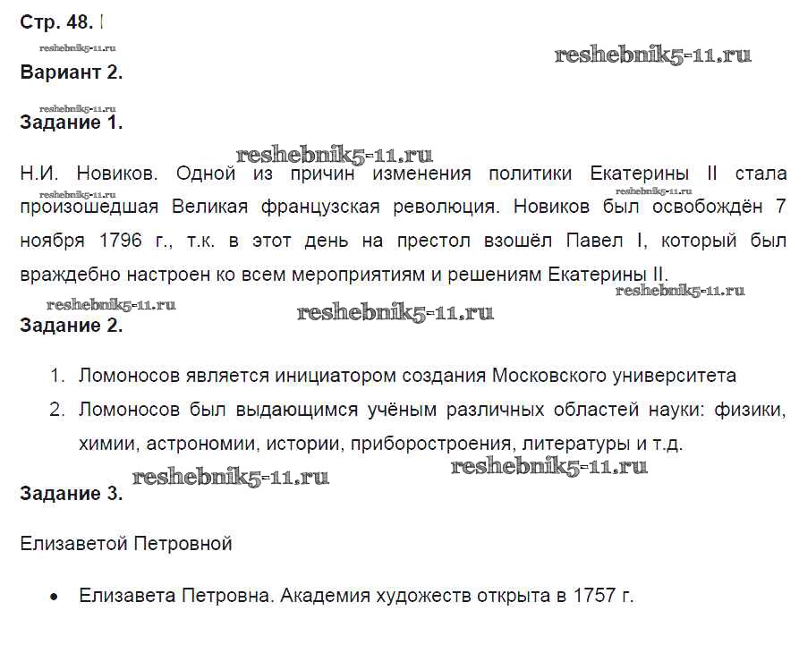 Готовая домашняя работа с ответами по Истории за 8 класс Артасов Контрольные работы УМК Просвещение 2016 ФГОС - Страницы 48