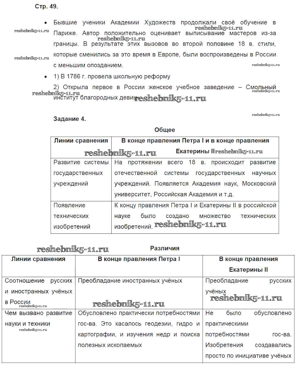 Готовая домашняя работа с ответами по Истории за 8 класс Артасов Контрольные работы УМК Просвещение 2016 ФГОС - Страницы 49
