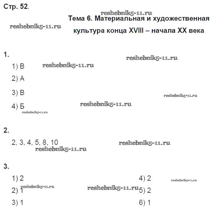 Готовая домашняя работа с ответами по Истории за 8 класс Волкова, Пономарев Рабочая тетрадь с контурными картами УМК Дрофа 2018 ФГОС - Страницы 52
