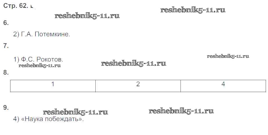 Готовая домашняя работа с ответами по Истории за 8 класс Гевуркова Рабочая тетрадь УМК Экзамен 2018 ФГОС - Страницы 62