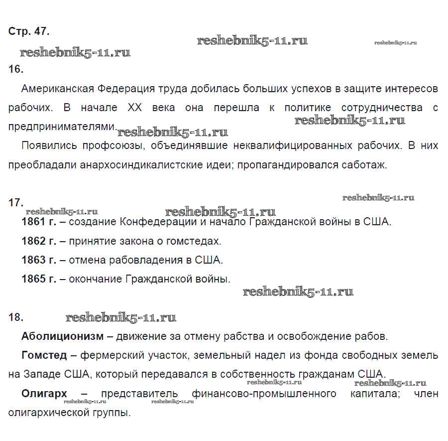 Готовая домашняя работа с ответами по Истории за 8 класс Ермакова Рабочая тетрадь Инновационная школа Русское слово 2017 ФГОС - Страницы 47