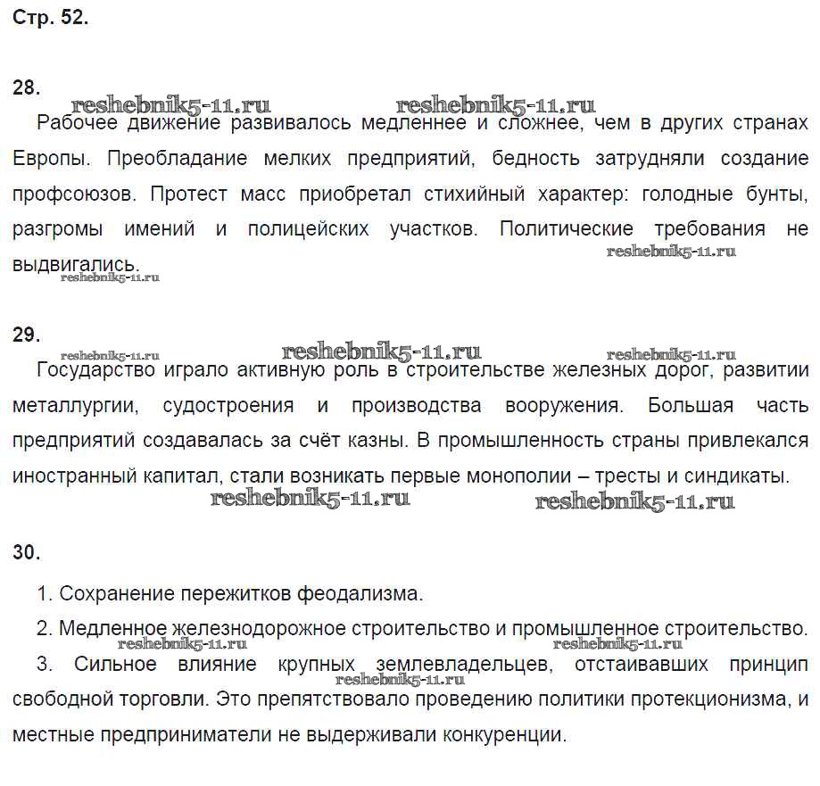 Готовая домашняя работа с ответами по Истории за 8 класс Ермакова Рабочая тетрадь Инновационная школа Русское слово 2017 ФГОС - Страницы 52