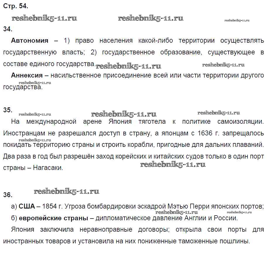 Готовая домашняя работа с ответами по Истории за 8 класс Ермакова Рабочая тетрадь Инновационная школа Русское слово 2017 ФГОС - Страницы 54