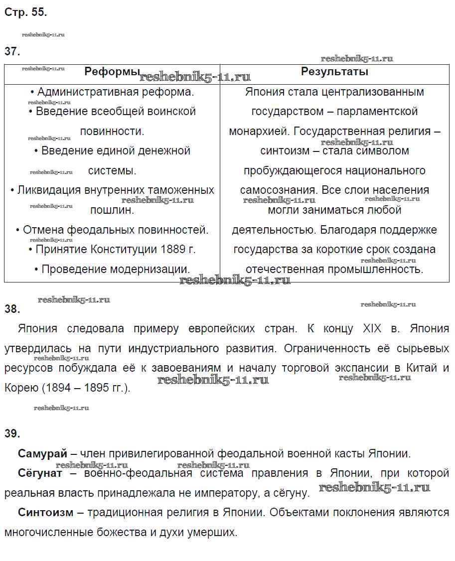 Готовая домашняя работа с ответами по Истории за 8 класс Ермакова Рабочая тетрадь Инновационная школа Русское слово 2017 ФГОС - Страницы 55