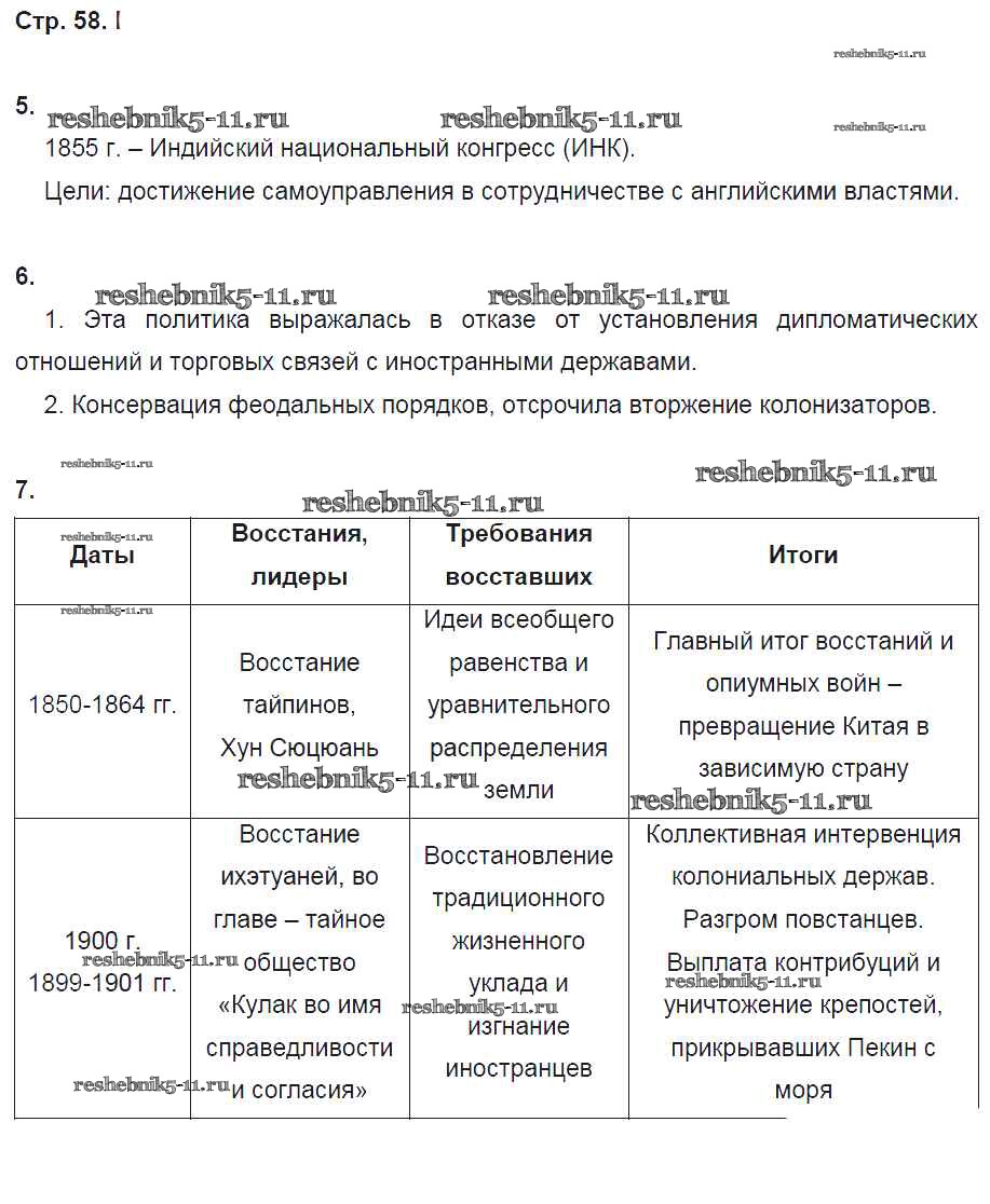 Готовая домашняя работа с ответами по Истории за 8 класс Ермакова Рабочая тетрадь Инновационная школа Русское слово 2017 ФГОС - Страницы 58