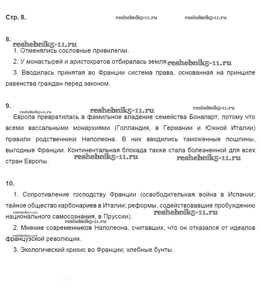 Готовая домашняя работа с ответами по Истории за 8 класс Ермакова Рабочая тетрадь Инновационная школа Русское слово 2017 ФГОС - Страницы 8