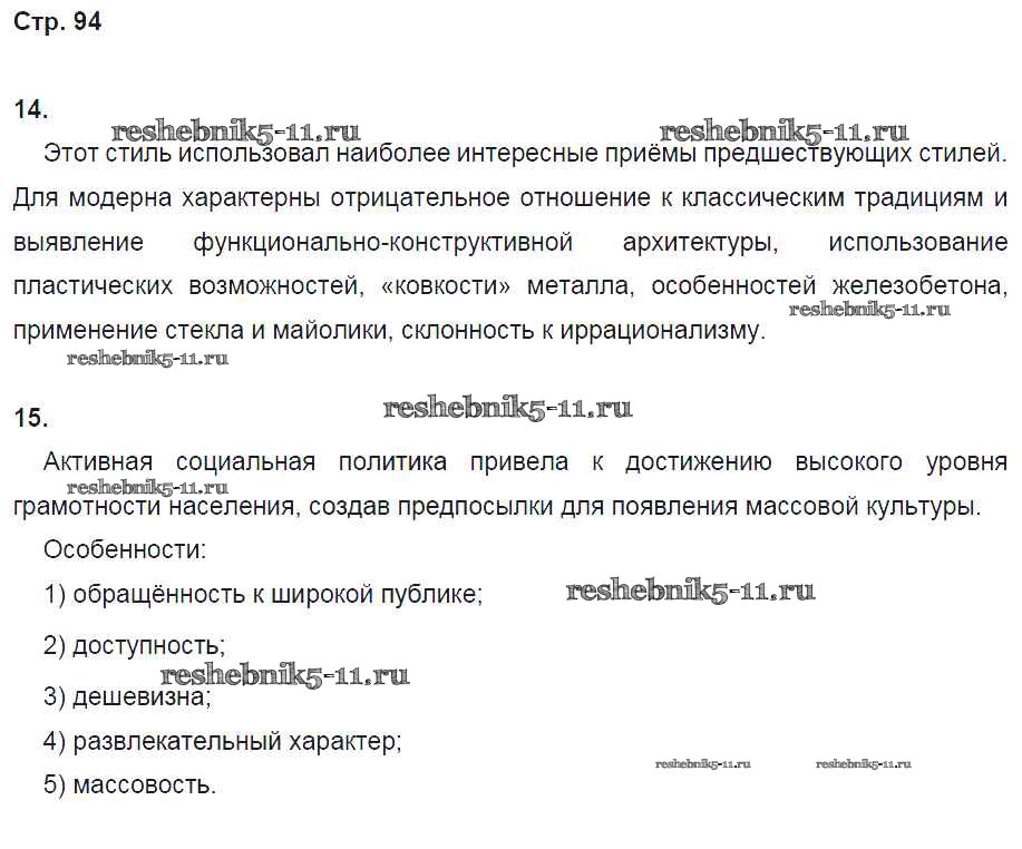 Готовая домашняя работа с ответами по Истории за 8 класс Ермакова Рабочая тетрадь Инновационная школа Русское слово 2017 ФГОС - Страницы 94