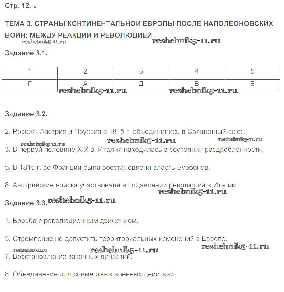 Готовая домашняя работа с ответами по Истории за 8 класс Пономарев Рабочая тетрадь с контурными картами УМК Экзамен 2015 ФГОС - Страницы 12
