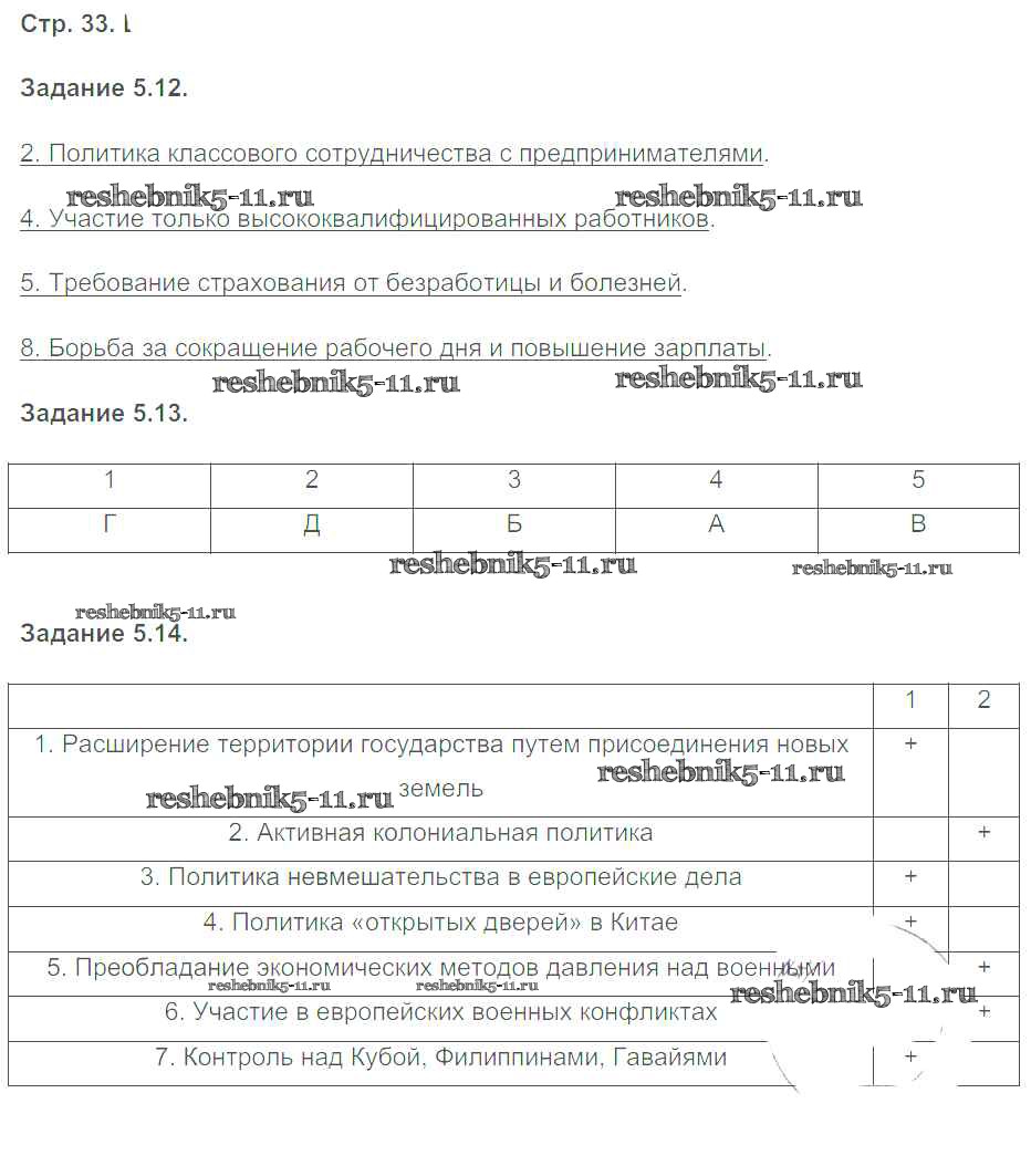 Готовая домашняя работа с ответами по Истории за 8 класс Пономарев Рабочая тетрадь с контурными картами УМК Экзамен 2015 ФГОС - Страницы 33