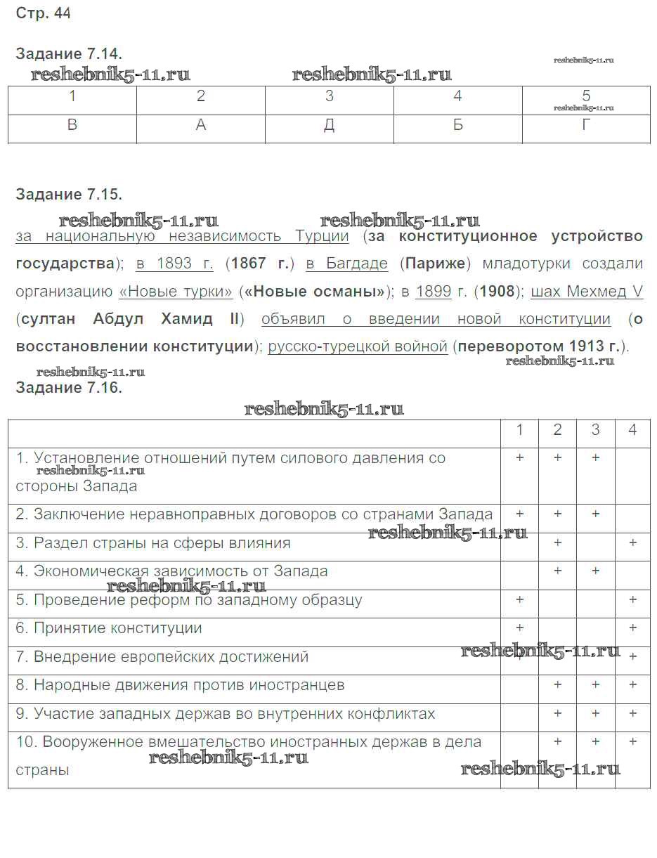 Готовая домашняя работа с ответами по Истории за 8 класс Пономарев Рабочая тетрадь с контурными картами УМК Экзамен 2015 ФГОС - Страницы 44