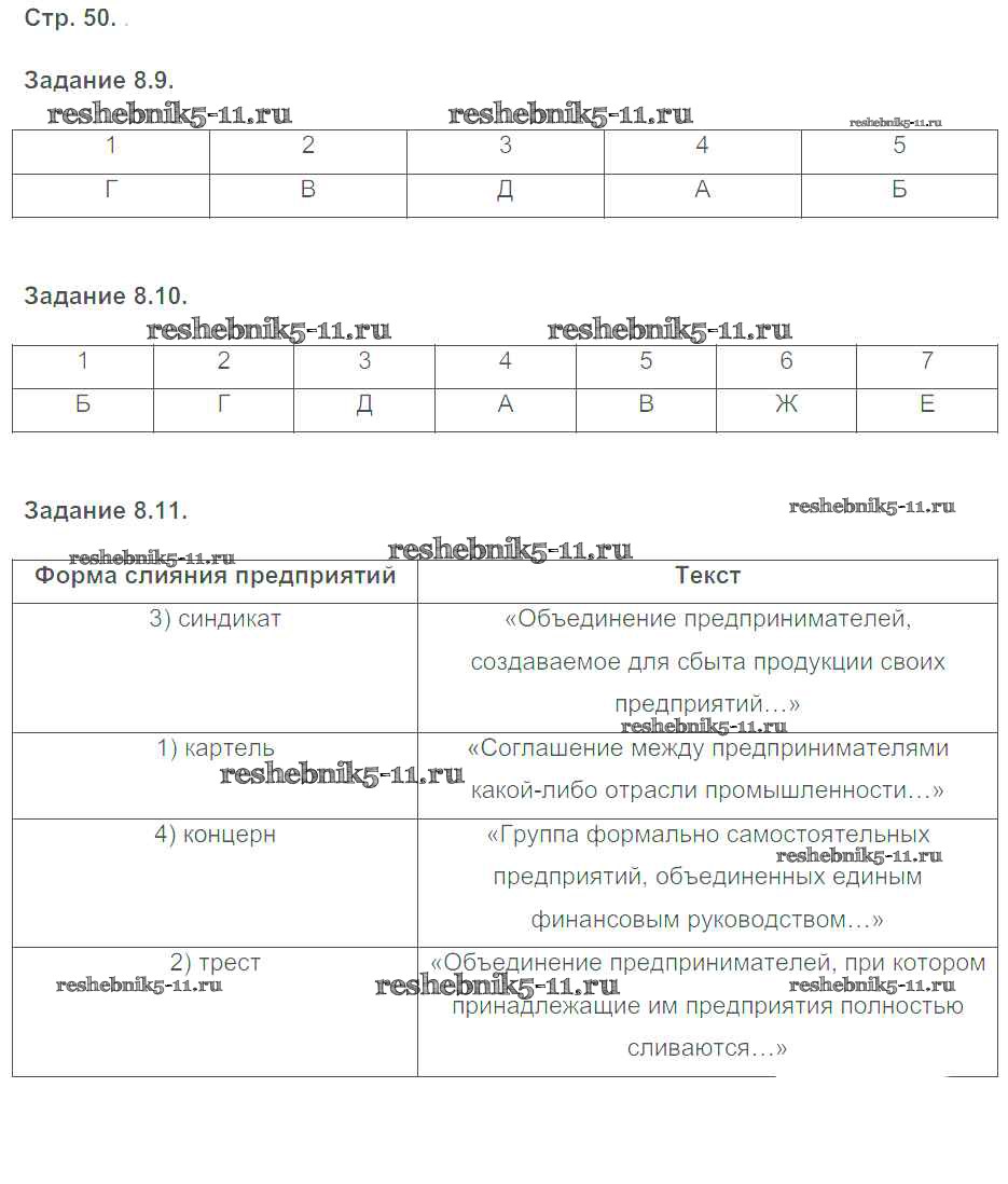 Готовая домашняя работа с ответами по Истории за 8 класс Пономарев Рабочая тетрадь с контурными картами УМК Экзамен 2015 ФГОС - Страницы 50