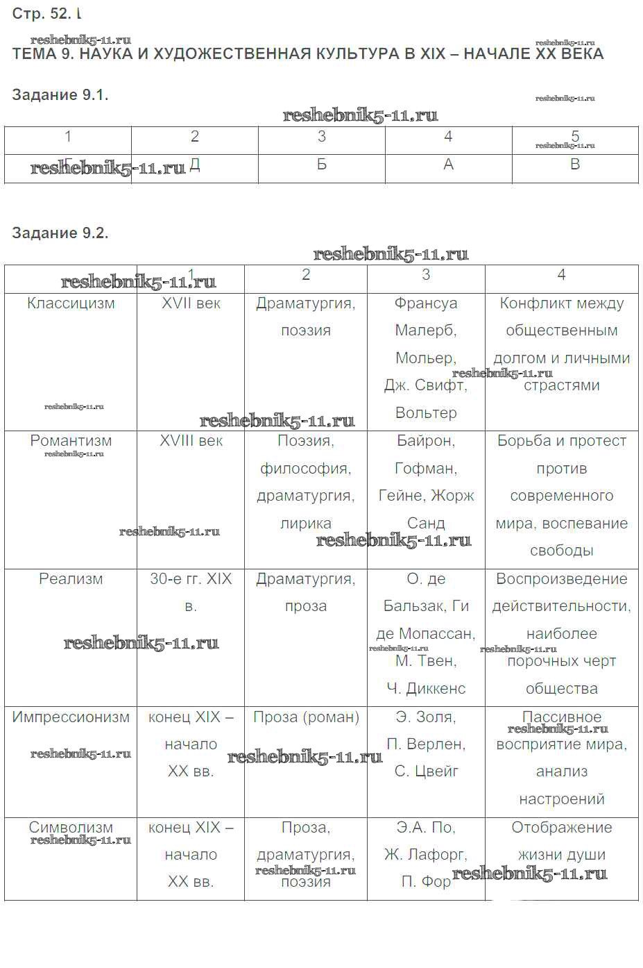Готовая домашняя работа с ответами по Истории за 8 класс Пономарев Рабочая тетрадь с контурными картами УМК Экзамен 2015 ФГОС - Страницы 52