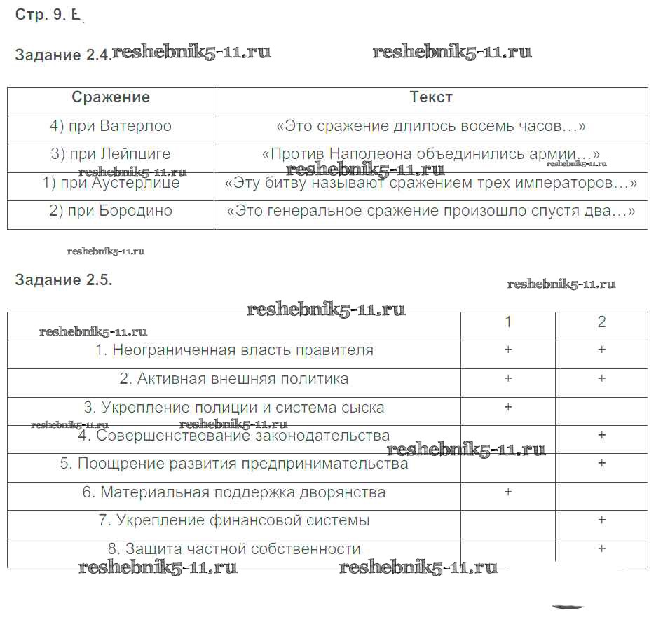 Готовая домашняя работа с ответами по Истории за 8 класс Пономарев Рабочая тетрадь с контурными картами УМК Экзамен 2015 ФГОС - Страницы 9