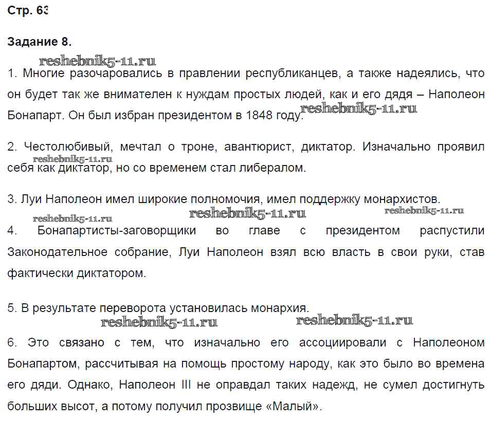 Готовая домашняя работа с ответами по Истории за 8 класс Румянцев Рабочая тетрадь УМК Часть 1, 2 Экзамен 2018 ФГОС - Часть 1. Страницы 63