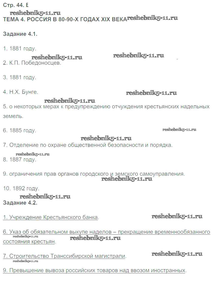 Готовая домашняя работа с ответами по Истории за 8 класс Симонова Рабочая тетрадь с контурными картами УМК Экзамен 2018 ФГОС - Страницы 44