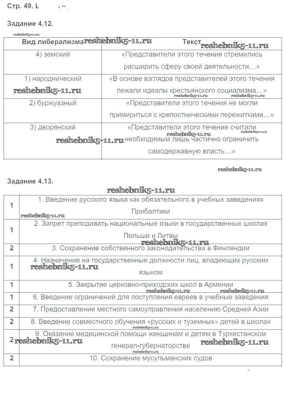 Готовая домашняя работа с ответами по Истории за 8 класс Симонова Рабочая тетрадь с контурными картами УМК Экзамен 2018 ФГОС - Страницы 49