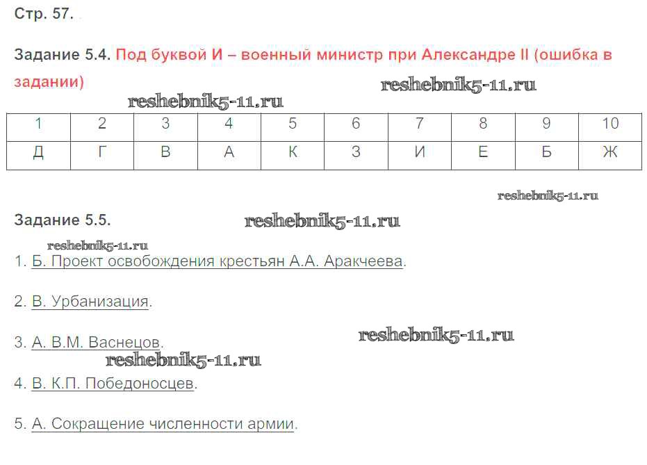 Готовая домашняя работа с ответами по Истории за 8 класс Симонова Рабочая тетрадь с контурными картами УМК Экзамен 2018 ФГОС - Страницы 57