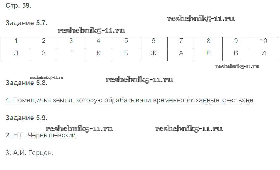 Готовая домашняя работа с ответами по Истории за 8 класс Симонова Рабочая тетрадь с контурными картами УМК Экзамен 2018 ФГОС - Страницы 59