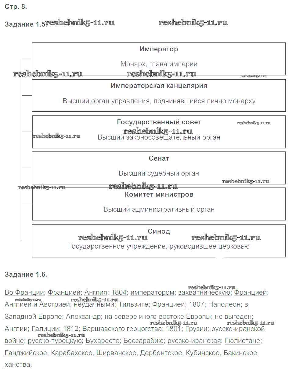 Готовая домашняя работа с ответами по Истории за 8 класс Симонова Рабочая тетрадь с контурными картами УМК Экзамен 2018 ФГОС - Страницы 8
