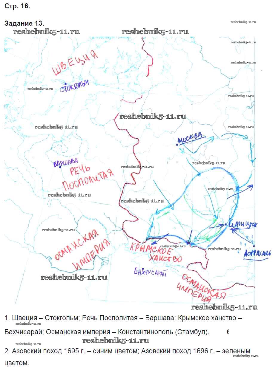 Готовая домашняя работа с ответами по Истории за 8 класс Чернова Рабочая тетрадь УМК Часть 1, 2 Экзамен 2017 ФГОС - Часть 1. Страницы 16