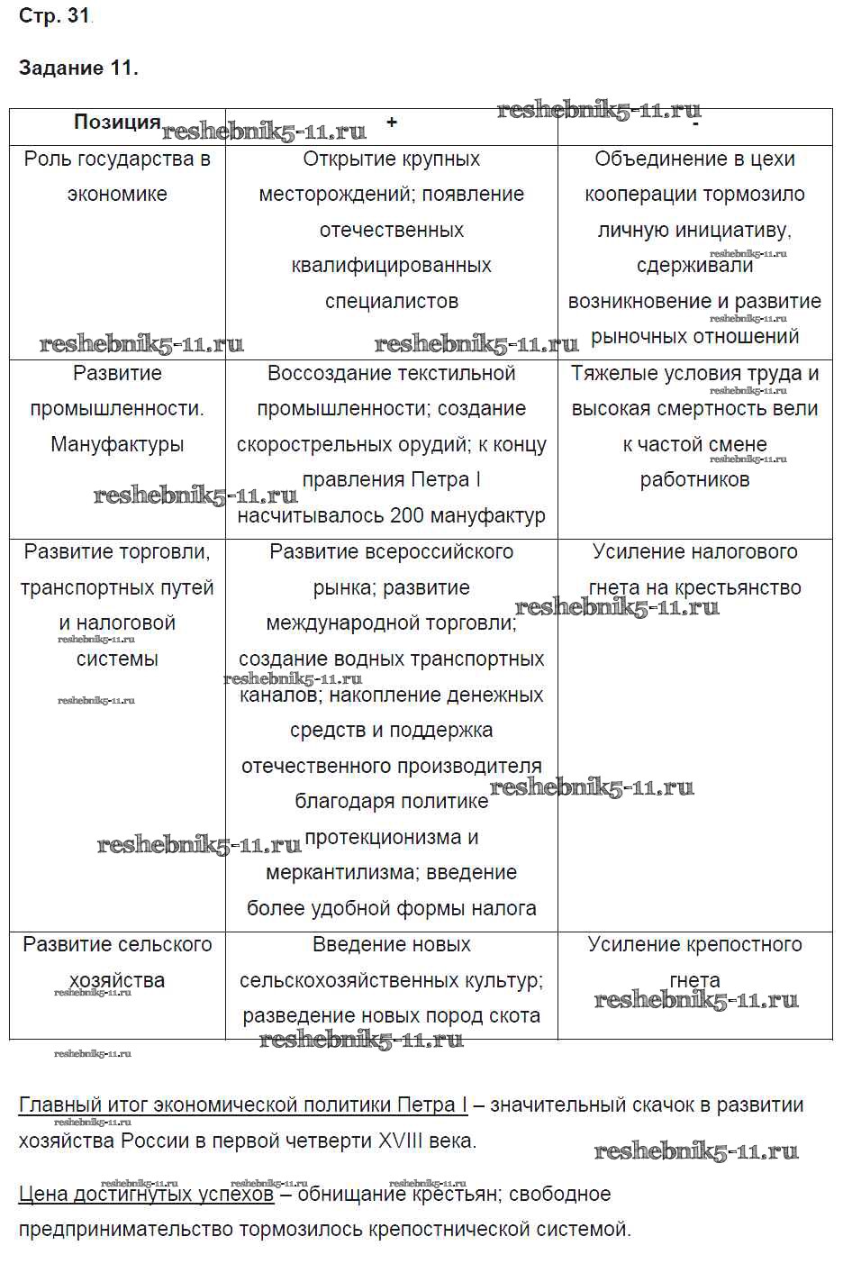 Готовая домашняя работа с ответами по Истории за 8 класс Чернова Рабочая тетрадь УМК Часть 1, 2 Экзамен 2017 ФГОС - Часть 1. Страницы 31