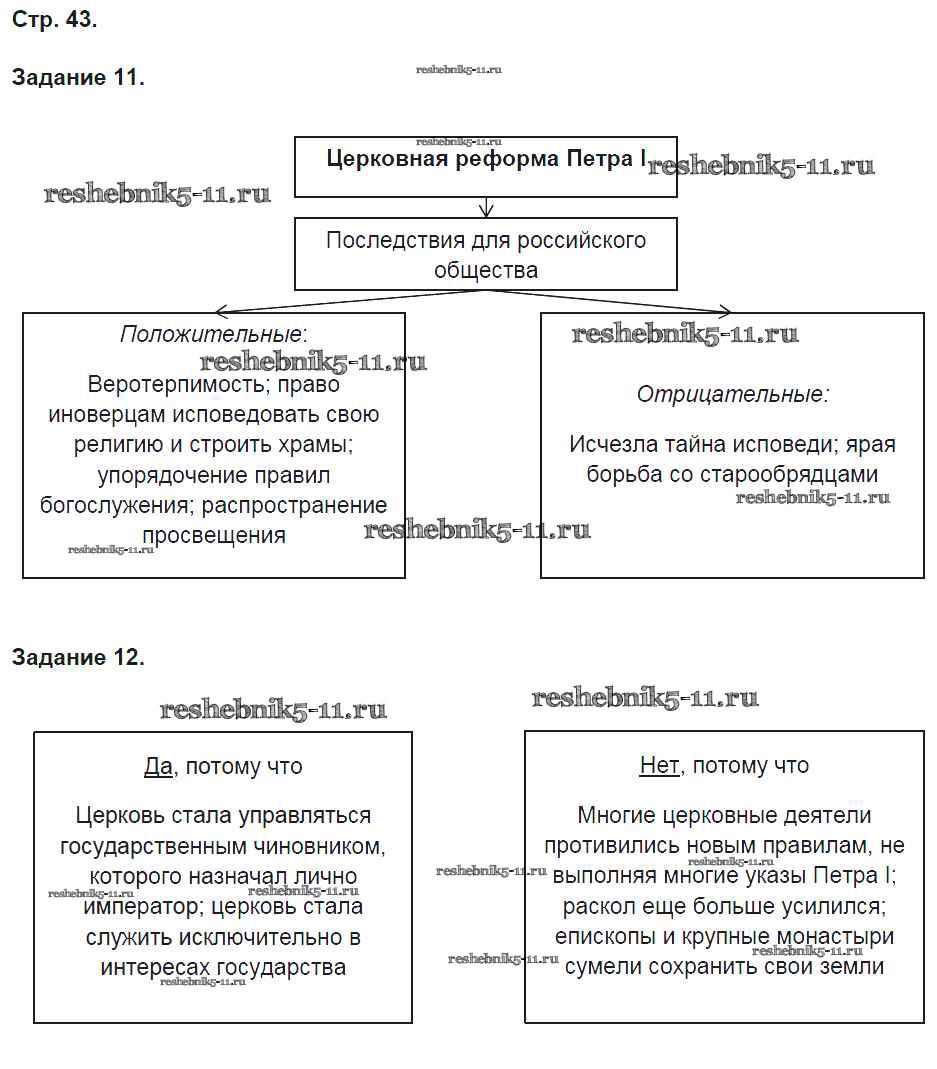 Готовая домашняя работа с ответами по Истории за 8 класс Чернова Рабочая тетрадь УМК Часть 1, 2 Экзамен 2017 ФГОС - Часть 1. Страницы 43