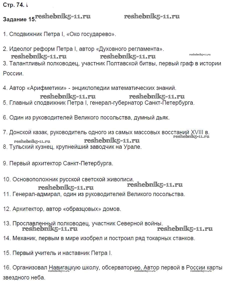 Готовая домашняя работа с ответами по Истории за 8 класс Чернова Рабочая тетрадь УМК Часть 1, 2 Экзамен 2017 ФГОС - Часть 1. Страницы 74
