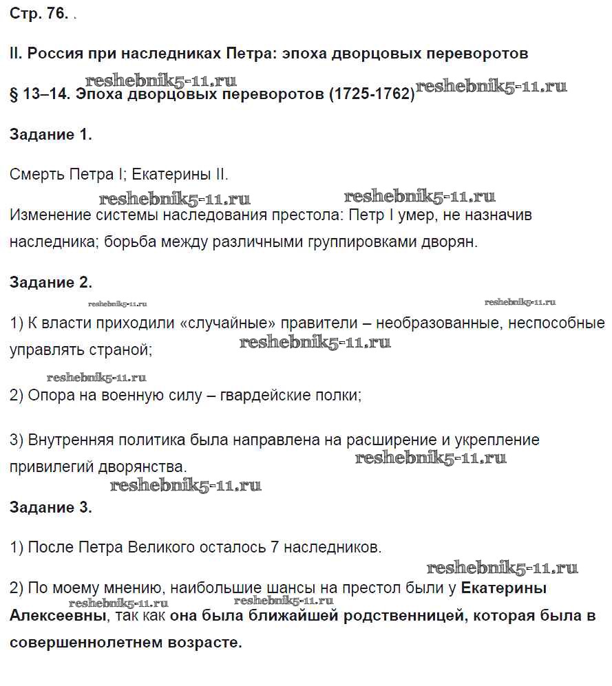 Готовая домашняя работа с ответами по Истории за 8 класс Чернова Рабочая тетрадь УМК Часть 1, 2 Экзамен 2017 ФГОС - Часть 1. Страницы 76