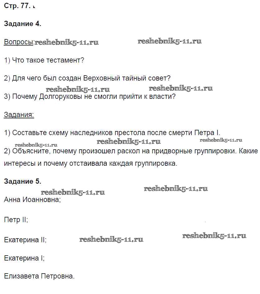 Готовая домашняя работа с ответами по Истории за 8 класс Чернова Рабочая тетрадь УМК Часть 1, 2 Экзамен 2017 ФГОС - Часть 1. Страницы 77