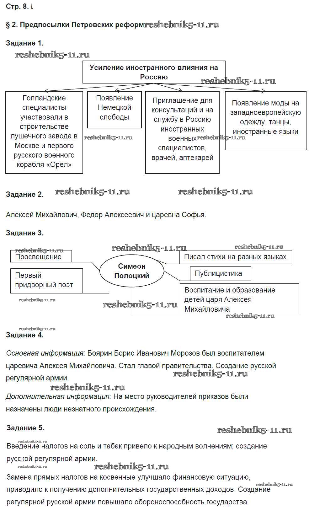 Готовая домашняя работа с ответами по Истории за 8 класс Чернова Рабочая тетрадь УМК Часть 1, 2 Экзамен 2017 ФГОС - Часть 1. Страницы 8