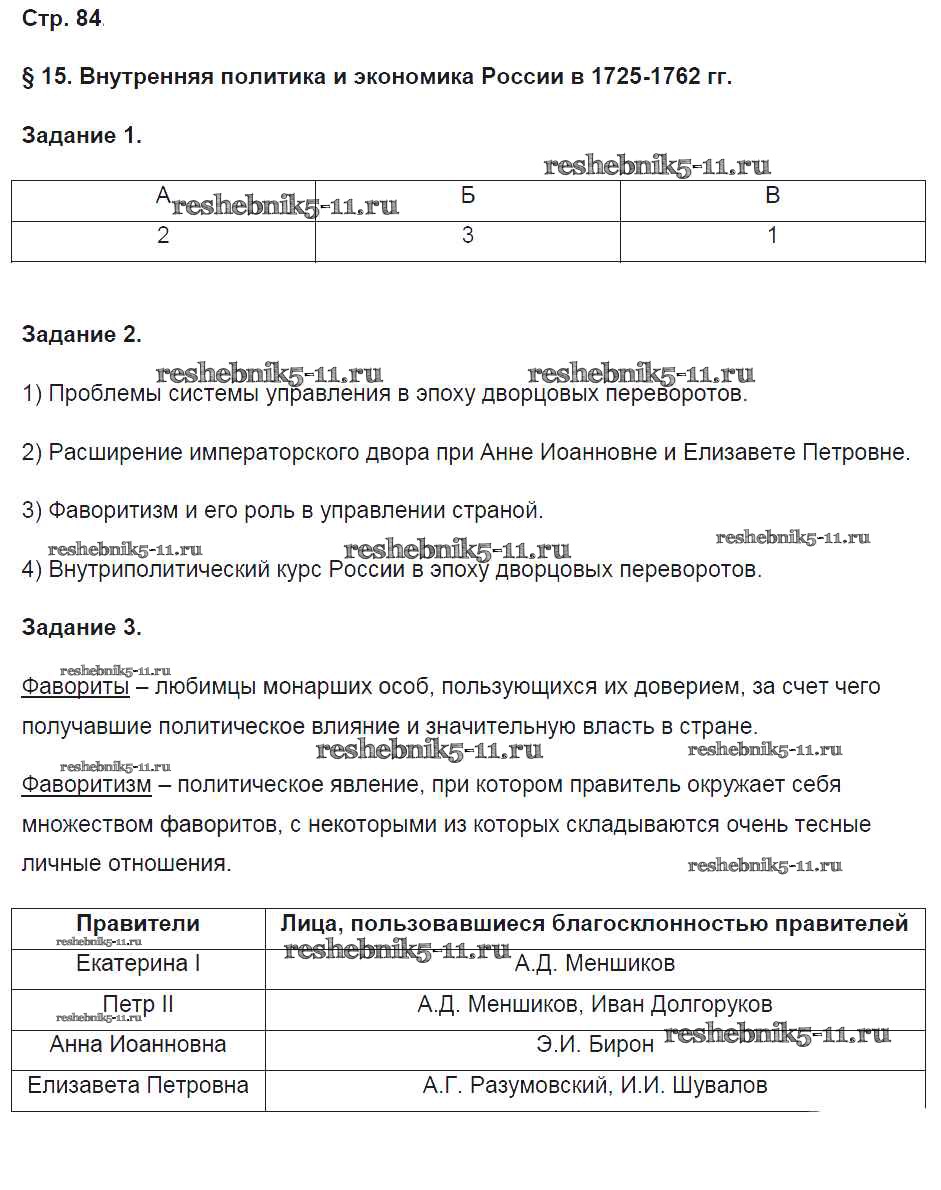 Готовая домашняя работа с ответами по Истории за 8 класс Чернова Рабочая тетрадь УМК Часть 1, 2 Экзамен 2017 ФГОС - Часть 1. Страницы 84