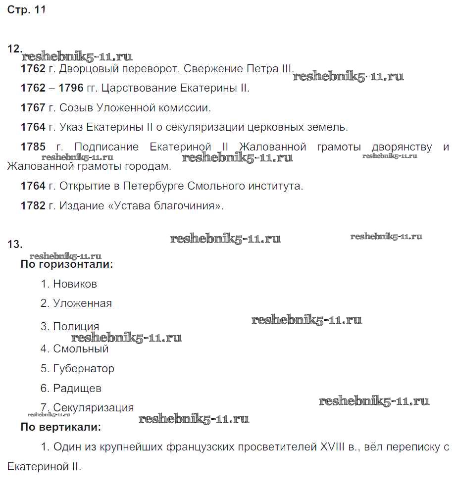 Готовая домашняя работа с ответами по Истории за 8 класс Чернова Рабочая тетрадь УМК Часть 1, 2 Экзамен 2017 ФГОС - Часть 2. Страницы 11