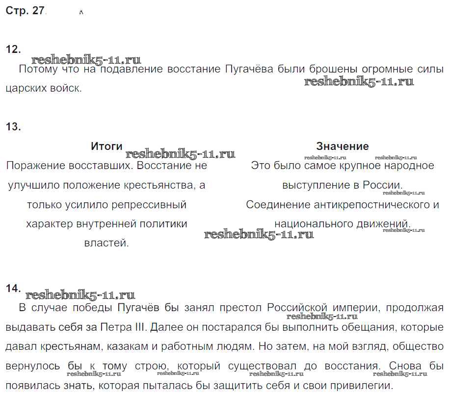 Готовая домашняя работа с ответами по Истории за 8 класс Чернова Рабочая тетрадь УМК Часть 1, 2 Экзамен 2017 ФГОС - Часть 2. Страницы 27