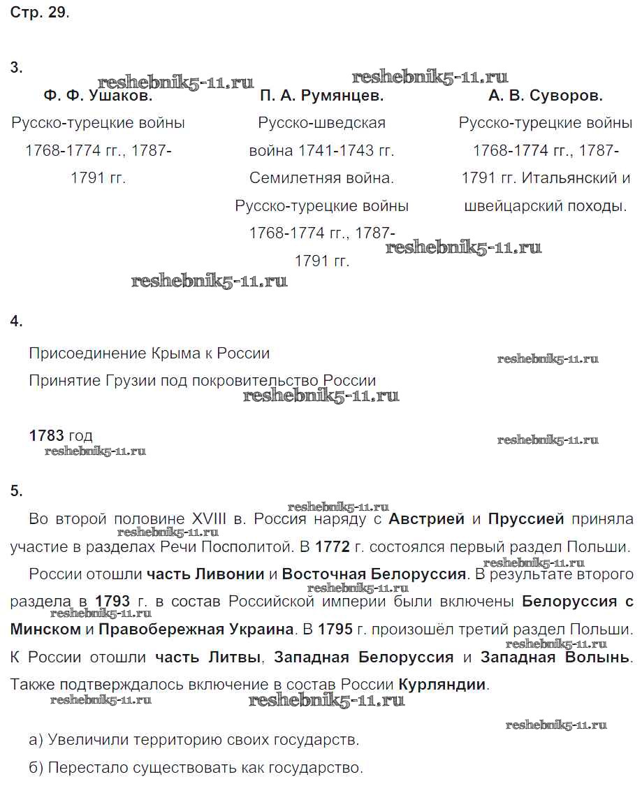 Готовая домашняя работа с ответами по Истории за 8 класс Чернова Рабочая тетрадь УМК Часть 1, 2 Экзамен 2017 ФГОС - Часть 2. Страницы 29