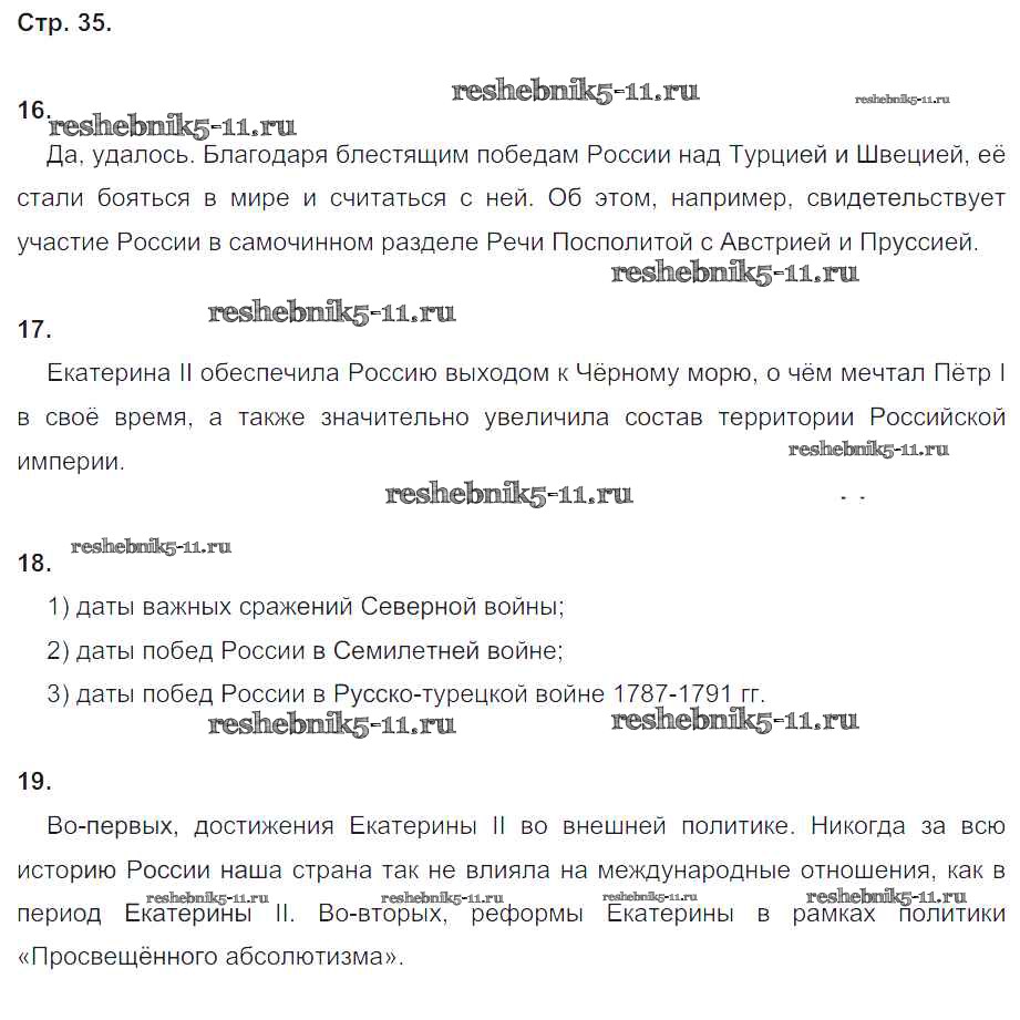 Готовая домашняя работа с ответами по Истории за 8 класс Чернова Рабочая тетрадь УМК Часть 1, 2 Экзамен 2017 ФГОС - Часть 2. Страницы 35