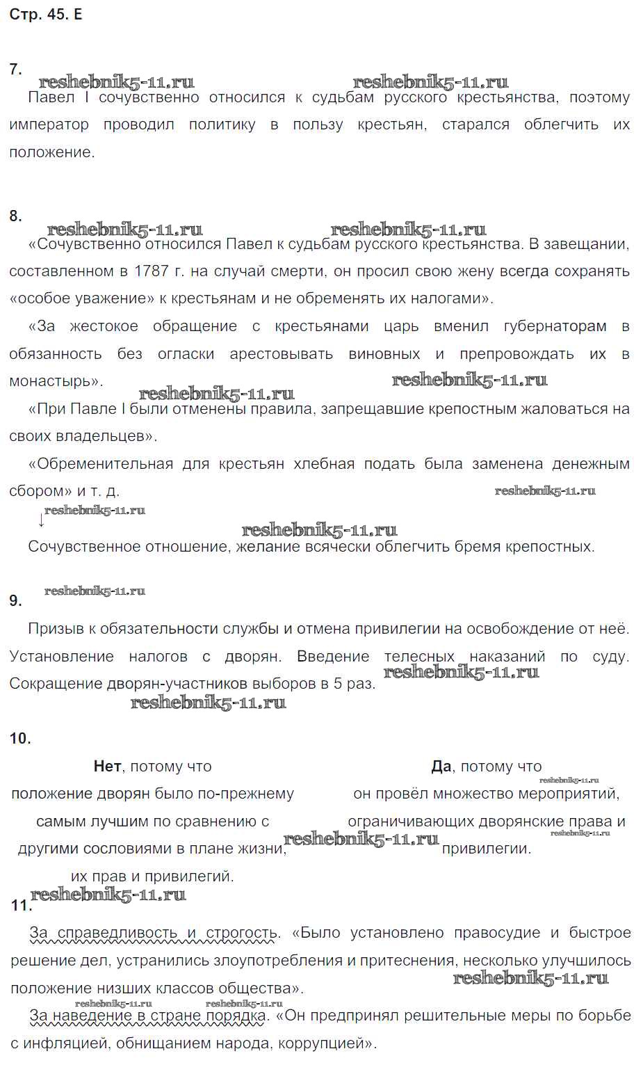 Готовая домашняя работа с ответами по Истории за 8 класс Чернова Рабочая тетрадь УМК Часть 1, 2 Экзамен 2017 ФГОС - Часть 2. Страницы 45
