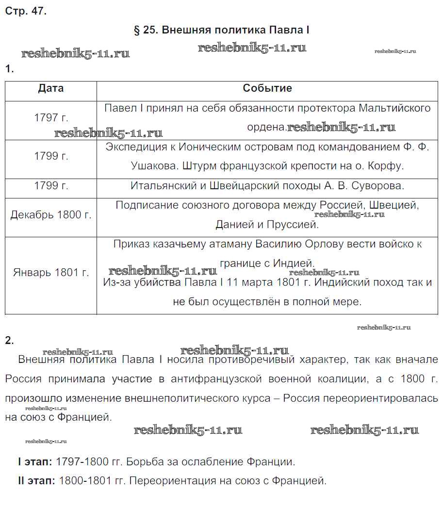 Готовая домашняя работа с ответами по Истории за 8 класс Чернова Рабочая тетрадь УМК Часть 1, 2 Экзамен 2017 ФГОС - Часть 2. Страницы 47