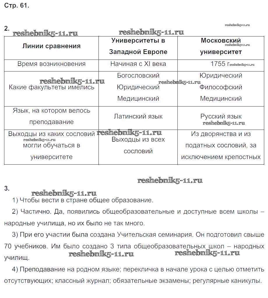 Готовая домашняя работа с ответами по Истории за 8 класс Чернова Рабочая тетрадь УМК Часть 1, 2 Экзамен 2017 ФГОС - Часть 2. Страницы 61