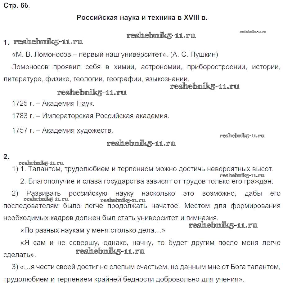 Готовая домашняя работа с ответами по Истории за 8 класс Чернова Рабочая тетрадь УМК Часть 1, 2 Экзамен 2017 ФГОС - Часть 2. Страницы 66