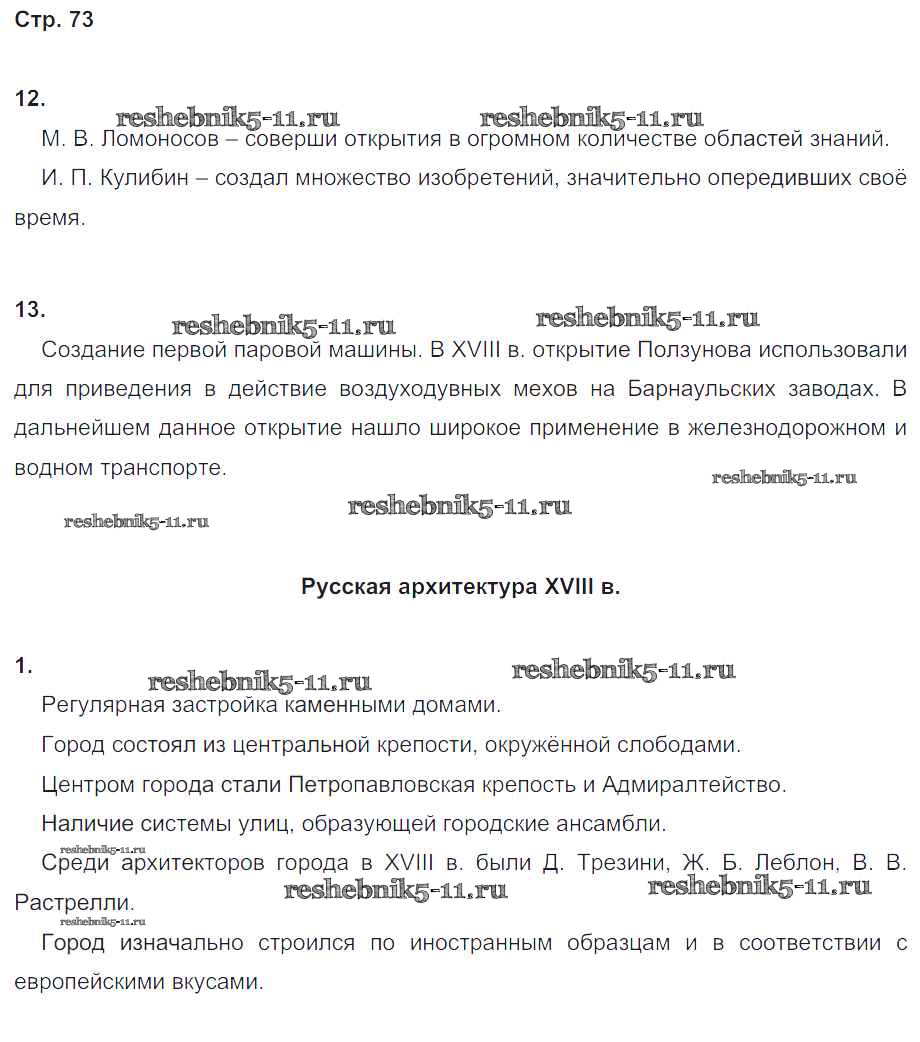 Готовая домашняя работа с ответами по Истории за 8 класс Чернова Рабочая тетрадь УМК Часть 1, 2 Экзамен 2017 ФГОС - Часть 2. Страницы 73