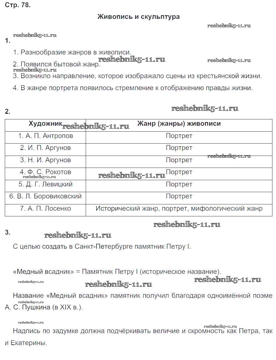 Готовая домашняя работа с ответами по Истории за 8 класс Чернова Рабочая тетрадь УМК Часть 1, 2 Экзамен 2017 ФГОС - Часть 2. Страницы 78