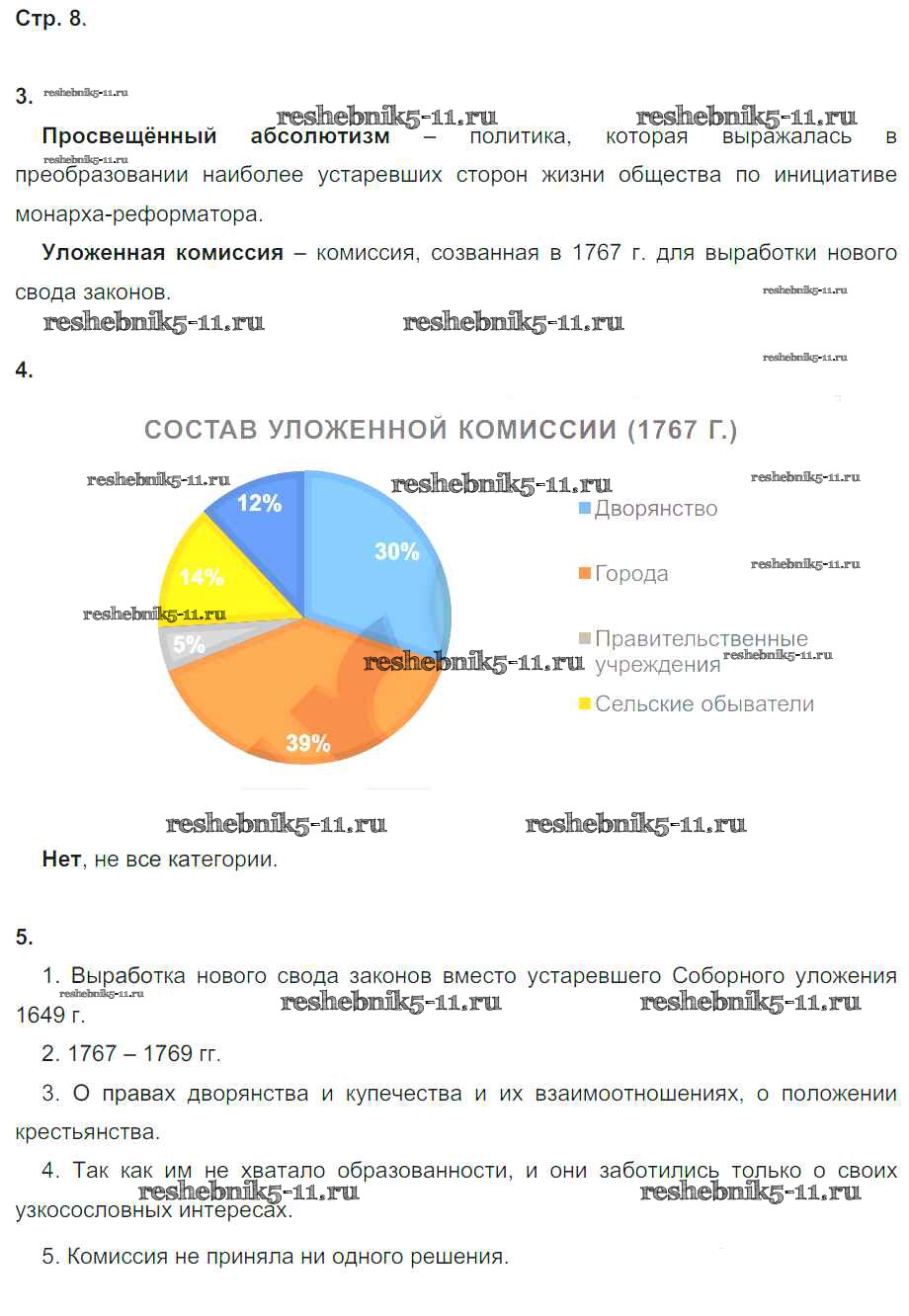Готовая домашняя работа с ответами по Истории за 8 класс Чернова Рабочая тетрадь УМК Часть 1, 2 Экзамен 2017 ФГОС - Часть 2. Страницы 8